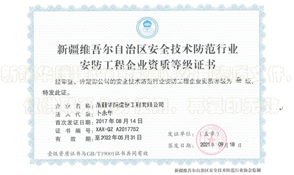 新疆維吾爾自治區(qū)計(jì)算機(jī)信息系統(tǒng)集成企業(yè)證書